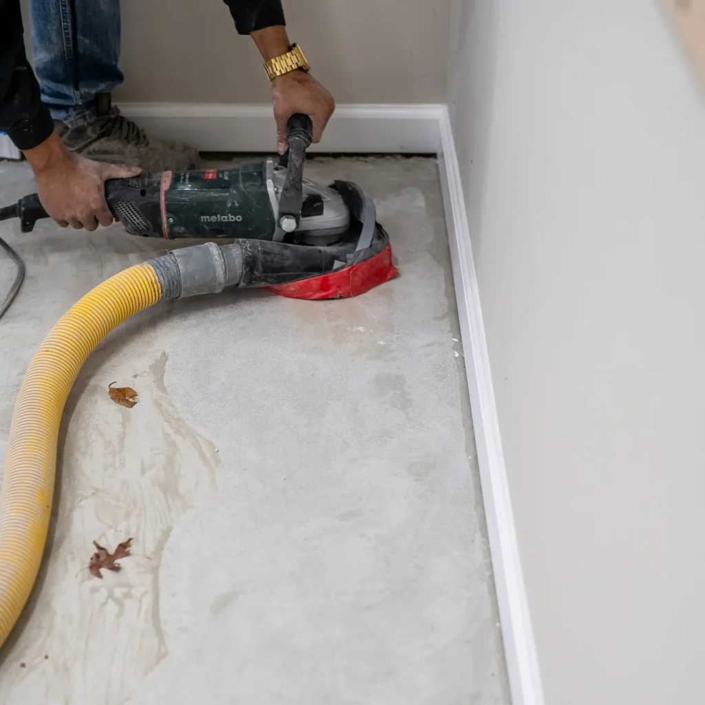 Epoxy flooring only performs as well as the surface beneath it. We invest time in grinding and repairing to create reliable adhesion.