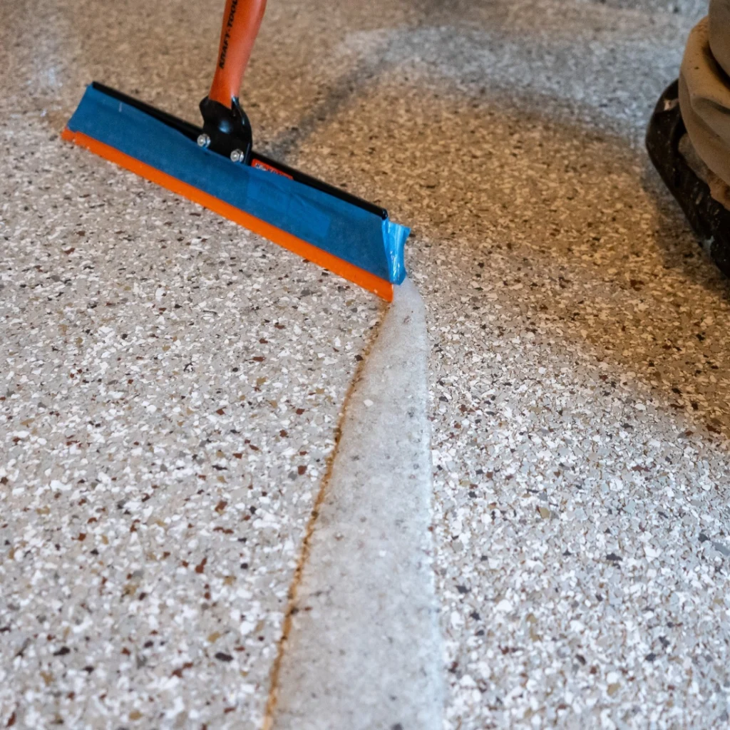 A standard concrete garage floor often shows tire marks, oil stains, and surface wear. An epoxy garage floor creates a sealed surface that is easier to sweep and mop.